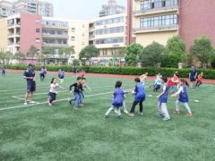 5 月 5 日下午,浦东新区第三教育署第五届 “阳光团队,魅力少年” 青年教师风采展示——优秀职业青年社团展示暨第二届师生联合触式橄榄球比赛在张江高科实验小学顺利举行。