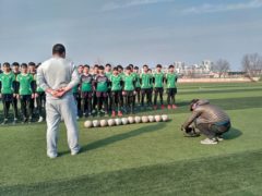 前国青队教练曹子颖指导蚌埠四中橄榄球队训练
