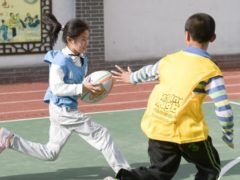 英式橄榄球趣玩六一活动在合肥市淝河小学举行