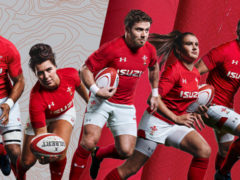 威尔士橄榄球代表队 2017-19 赛季主客场球衣,球衣赞助商为 Under Armour。 主场球衣: 客场球衣: