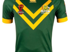 澳大利亚国家队 2017 年联盟式橄榄球世界杯球衣,球衣赞助商为 Canterbury。