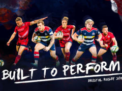 布里斯托尔橄榄球俱乐部 2017-18 赛季主客场球衣,球衣赞助商为 Bristol Sport。