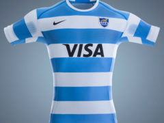 阿根廷橄榄球国家队 2017-18 赛季主客场球衣,球衣赞助商为耐克。 主场球衣: 客场球衣: