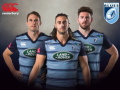 卡迪夫蓝橄榄球俱乐部 2017-18 赛季主场球衣,球衣赞助商为 Canterbury。