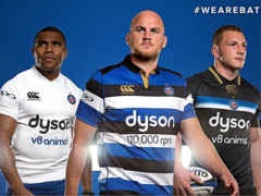 巴斯橄榄球俱乐部 2017-18 赛季客场、欧洲赛事球衣,球衣赞助商为 Canterbury。 客场球衣: 欧洲赛事球衣: