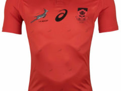 南非橄榄球国家队 2017-18 赛季客场球衣,球衣赞助商为 ASICS。