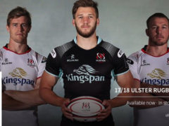 阿尔斯特橄榄球俱乐部 2017-18 赛季主客场球衣,球衣赞助商为 Kukri。 主场球衣: 客场球衣: