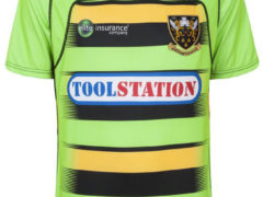 北安普敦圣徒橄榄球俱乐部 2017-18 赛季客场球衣,球衣赞助商为 Macron。