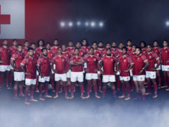 汤加橄榄球国家队 2017 赛季主场球衣,球衣赞助商为美津浓。