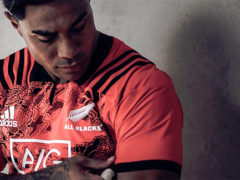 全黑队 2017 年雄狮队巡回赛训练球衣,球衣赞助商为阿迪达斯。