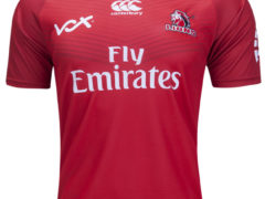 狮子橄榄球队 2017 赛季超级橄榄球联赛主场球衣,球衣赞助商为 Canterbury。