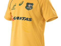 澳大利亚橄榄球国家队 2017 赛季主场球衣,球衣赞助商为 ASICS。