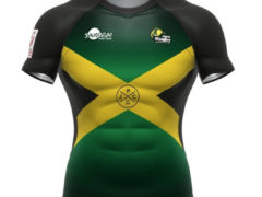 牙买加橄榄球国家队、牙买加七人制橄榄球国家队 2017-18 赛季主场球衣,球衣赞助商为 Samurai。