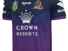 墨尔本暴风橄榄球俱乐部 2017 赛季 NRL 主客场球衣,球衣赞助商为 ISC。 主场球衣: 客场球衣:
