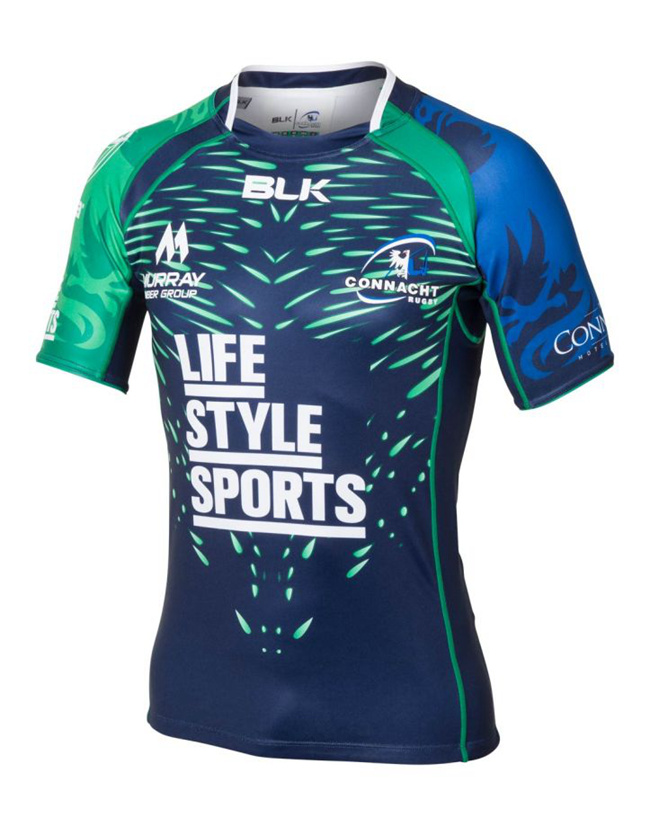 康诺特橄榄球队 2014-15 赛季欧洲赛事球衣,球衣赞助商为 BLK。