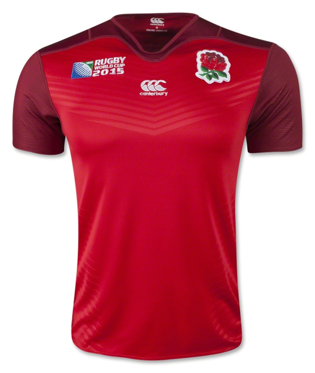 英格兰代表队参加 2015 年橄榄球世界杯的主客场球衣,球衣赞助商为 Canterbury。