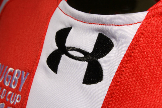 格鲁吉亚国家队参加 2015 年橄榄球世界杯的主客场球衣,球衣赞助商为 Under Armour。