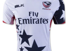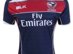 美国七人制橄榄球国家队 2016 赛季主客场球衣,球衣赞助商为 BLK。 主场球衣: 客场球衣: