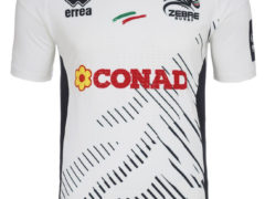 斑马橄榄球队 2015-16 赛季主场球衣,球衣赞助商为 Errea。