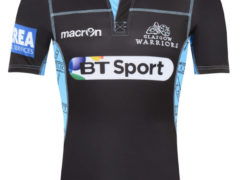 格拉斯哥勇士橄榄球队 2015-16 赛季主客场球衣,球衣赞助商为 Macron。 主场球衣: 客场球衣: