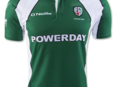伦敦爱尔兰人橄榄球队 2015-16 赛季主客场球衣,球衣赞助商为 O’Neills。 主场球衣: 客场球衣:
