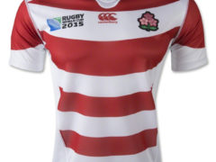 日本国家队参加 2015 年橄榄球世界杯的主客场球衣,球衣赞助商为 Canterbury。 主场球衣: 客场球衣: