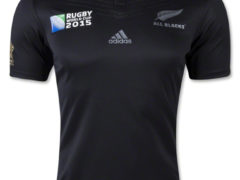 全黑队参加 2015 年橄榄球世界杯的主场球衣,球衣赞助商为阿迪达斯。