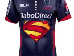 墨尔本叛军 2015 赛季超级橄榄球联赛超级英雄主题球衣,球衣赞助商为 BLK。
