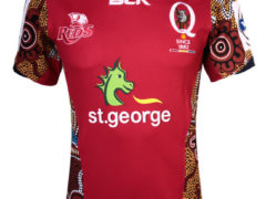 昆士兰红橄榄球队 2015 赛季土著版球衣,球衣赞助商为 BLK。