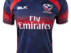 美国七人制橄榄球国家队 2014-15 赛季主场球衣,球衣赞助商为 BLK。