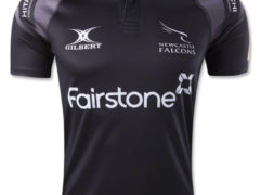 纽卡斯尔猎鹰橄榄球队 2014-15 赛季主客场球衣,球衣赞助商为 Gilbert。 主场球衣: 客场球衣: