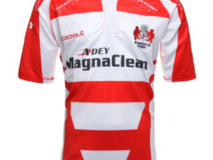 格洛斯特橄榄球队 2014-15 赛季主客场球衣,球衣赞助商为 Kooga。 主场球衣: 客场球衣: