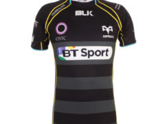 鱼鹰橄榄球队 2014-15 赛季欧洲赛事球衣,球衣赞助商为 BLK。