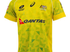 澳大利亚七人制橄榄球国家队 2014-15 赛季主客场球衣,球衣赞助商为 ASICS。 主场球衣: 客场球衣: