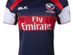 美国橄榄球国家队 2014-15 赛季主客场球衣,球衣赞助商为 BLK。 主场球衣: 客场球衣: