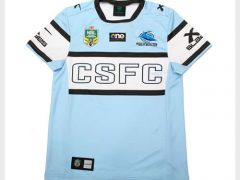 克罗纳拉-萨瑟兰鲨鱼联盟式橄榄球队发布 2014 赛季主场、九人制球衣,球衣赞助商为 X Blades。 主场球衣: 九人制球衣: