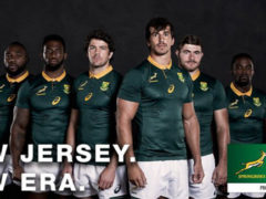南非橄榄球国家队 2017 赛季主场球衣,球衣赞助商为 ASICS。