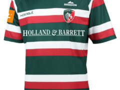 莱斯特老虎橄榄球俱乐部 2016-17 赛季主客场球衣,球衣赞助商为 Kooga。 主场球衣: 客场球衣: