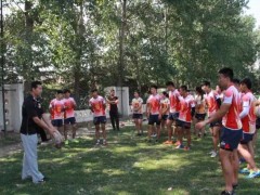 前国家队队长张志强在青岛指导青少年橄榄球训练