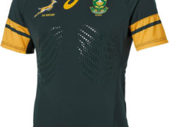 南非橄榄球国家队 2016-17 赛季主客场球衣,球衣赞助商为 ASICS。 主场球衣: 客场球衣: