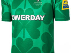伦敦爱尔兰人橄榄球俱乐部 2016 赛季圣帕特里克节球衣,球衣赞助商为 O’Neills。