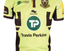 北安普敦圣徒橄榄球队 2013-15 赛季客场球衣,球衣赞助商为 Burrda。
