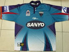 纽卡斯尔骑士联盟式橄榄球队 2002-03 赛季主场球衣,2002 赛季世界俱乐部挑战赛球衣,球衣赞助商为 ISC。 2002-03 赛季主场球衣: 2002 赛季世界俱乐部挑战赛球衣:
