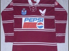 悉尼公鸡联盟式橄榄球队 1992 赛季主场球衣,球衣赞助商为 Canterbury。 主场球衣: