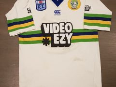 堪培拉奇袭联盟式橄榄球队发布 1991 赛季客场球衣,球衣赞助商为 Canterbury。 主场球衣: