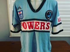 克罗纳拉-萨瑟兰鲨鱼联盟式橄榄球队发布 1991 赛季主场球衣。 主场球衣:
