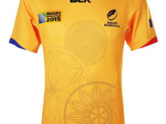 罗马尼亚国家队参加 2015 年橄榄球世界杯的主客场球衣,球衣赞助商为 BLK。 主场球衣: 客场球衣: