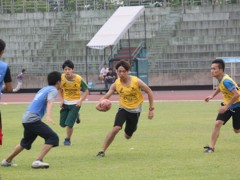 随着学校阳光体育的深入开展,2014 年浙江大学触式橄榄球联赛再次点燃校园。6 月 8 日,来自不同学院、不同年级、不同性别超过 200 名橄榄球爱好者齐聚球场。比赛共 8 个队伍,设两个小组。各组循环赛后小组前两名进行淘汰赛。 除了竞赛的 8 个队伍外,另有两支队伍特别值得介绍...